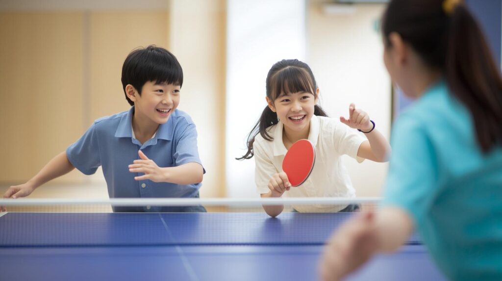 卓球は生涯スポーツとしても人気。小学生のうちに基礎を身につけておくと、長く楽しめる趣味になります。将来地元を離れる事になっても大学、会社勤め先の近くで卓球できる場所を探すこともできます。 - 世代間を越えた交流をしやすい